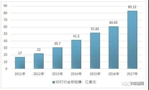 2011-2017年全球3D打印市場規(guī)模走勢(shì)