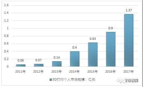 2011-2017年3D打印在個(gè)人市場行業(yè)應(yīng)用市場規(guī)模