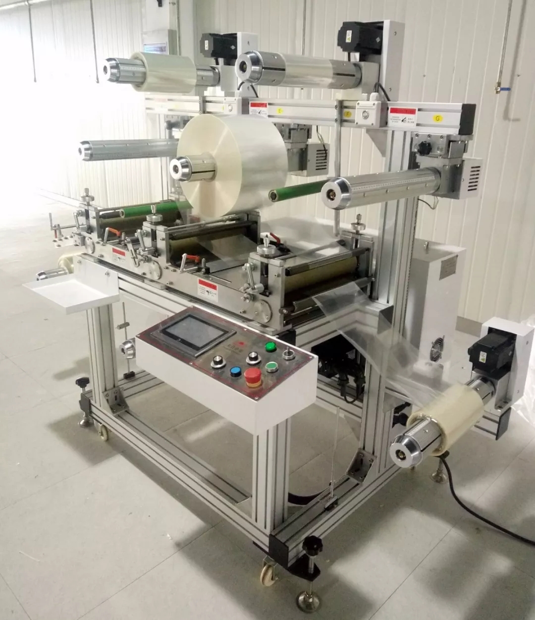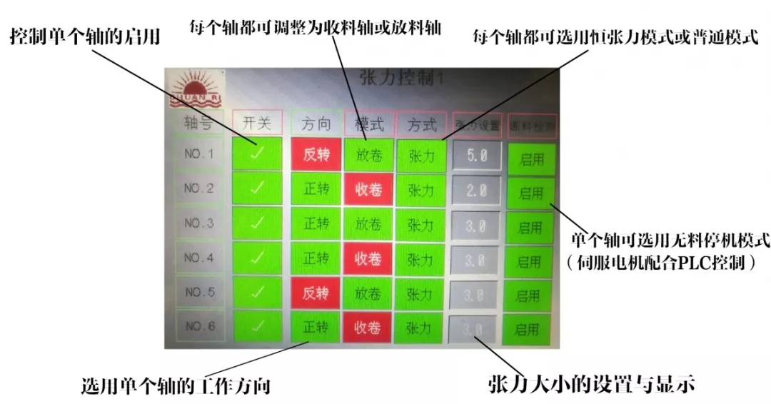 2、普通貼合機為磁粉,磁粉離合和三相異步電機控制單獨控制放料和收料軸,不可互換。每個軸需要獨立人工視材料的卷徑來隨時視貼合狀態(tài)調(diào)整;