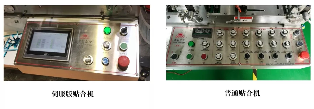 1、普通貼合機是單獨按鈕,人工視材料變化而調(diào)節(jié)張力和速度;伺服版貼合機是伺服PLC和觸摸屏控制張力和速度。