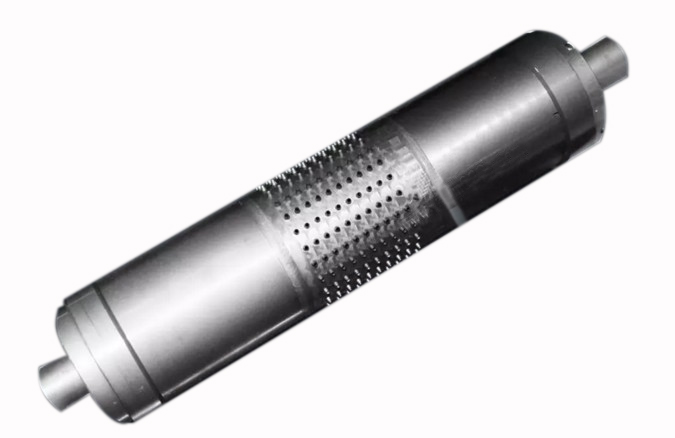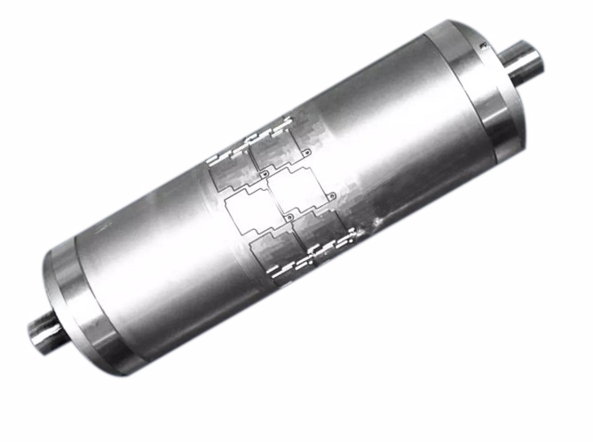 此類圓刀刀體中間掏空,通過刀刃的特殊加工,在模切時可以將廢料卡在刀腔里,并自動依次擠壓落在掏空的刀體內(nèi)部,再通過刀體旁邊開出的排廢口將廢料清走。這種刀具排廢容易,無噪音,但對廢料的形狀有要求、一般都是規(guī)則圖形,如圓孔、方孔排廢等。圓孔直徑在3-10mm排廢效果是最好。